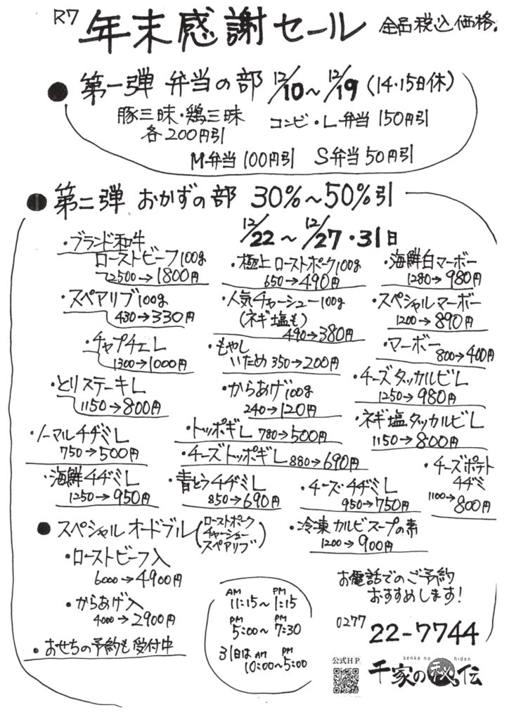 今年も千家の秘伝では、おせち&年末感謝セールを実施予定でございます。